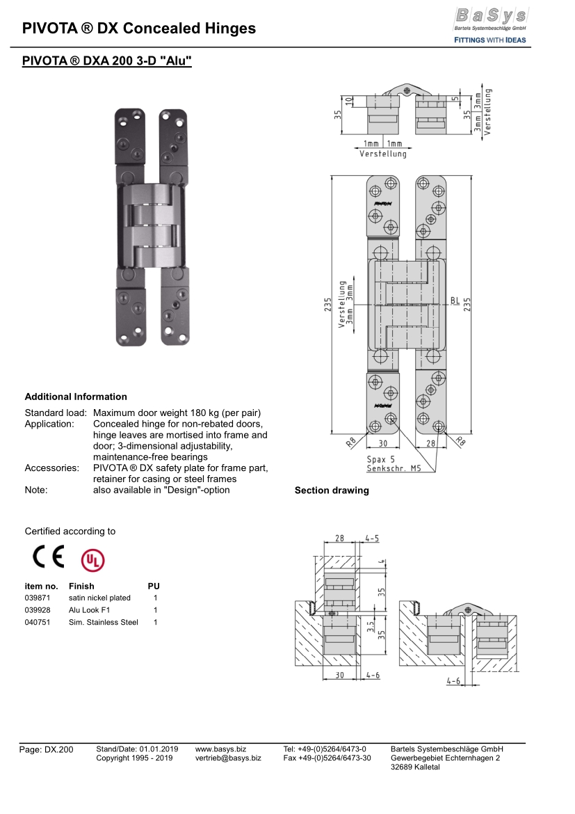 Dolda gångjärn Pivota DXA200 3_D AL