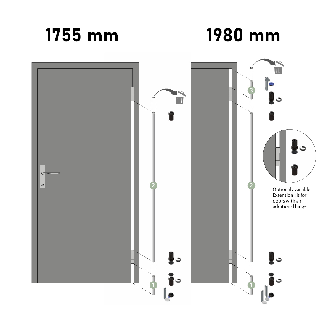 Tilläggsset gäller vid utökning med ett gångjärn.