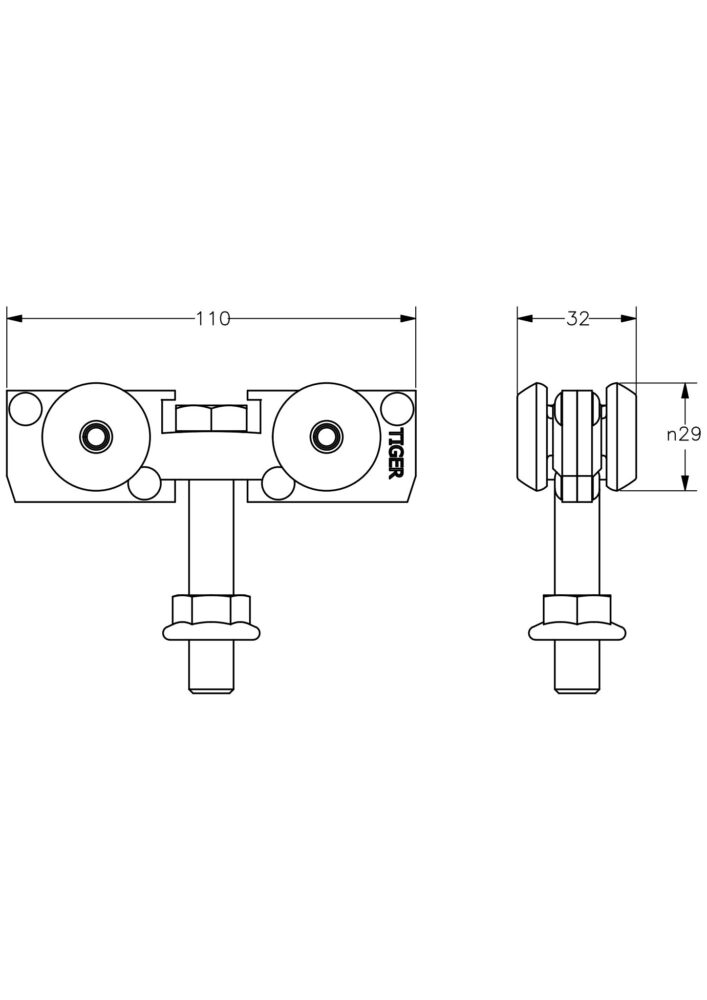 Denna modell är avsedd för normala belastningsväxlingar och normalt utnyttjande av skenans bärförmåga. Ingen höjdjustering i hängrullen. Justeringen utföres med bulten som gängas ned i dörrbladet.